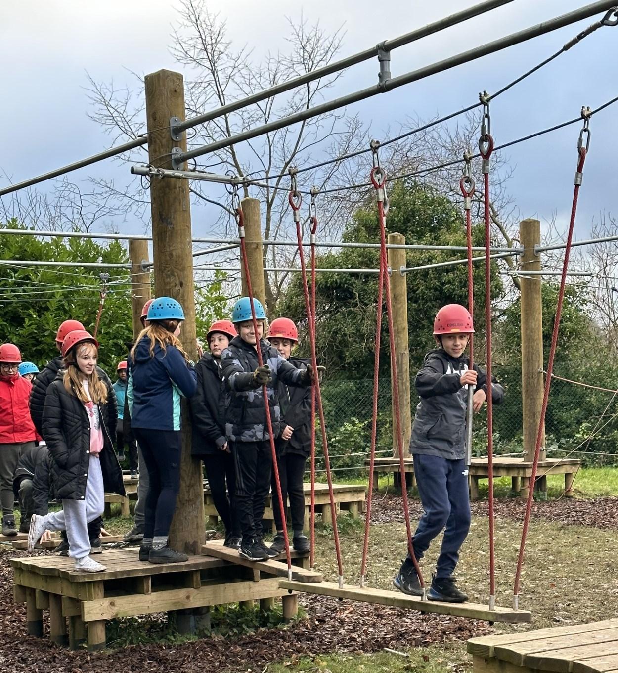 The theme was “Strong Towers”, allowing students me and space to build their own strong towers in their rela onships with each other and with God. The retreat began with ice breakers and a er a lovely dinner we moved on to a variety of games and ac vi es which helped the three small groups come together as a team. The evening ended with a me of prayer. Students commented how much they had enjoyed the me of prayer. Thursday began with a good breakfast before morning prayer. There was me to learn new hymns in readiness for evening Mass. Then, we headed out on a rather muddy walk, giving us me to chat to each other and appreciate the sunshine. In the a ernoon we walked the short walk to Alton Castle to use the low rope ac vity. The three groups were just brilliant, working together and encouraging one another to achieve the challenges set. Evening Mass in the Pugin chapel at the castle was beau ful, students joining in well with the new hymns we had learnt. We had more games a er dinner with the staff becoming slightly compe ve!