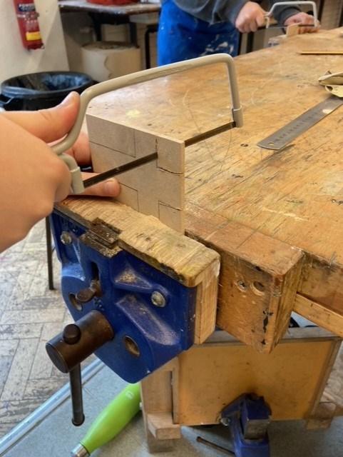 A great lesson with 7yAd4 for their first prac cal lesson with Miss Wood. Students are learning how to use a junior hacksaw, safely in the workshop. All students were engaged, followed health and safety rules they had learnt in the previous lesson to produce the star ng of their cross. Well done to all!