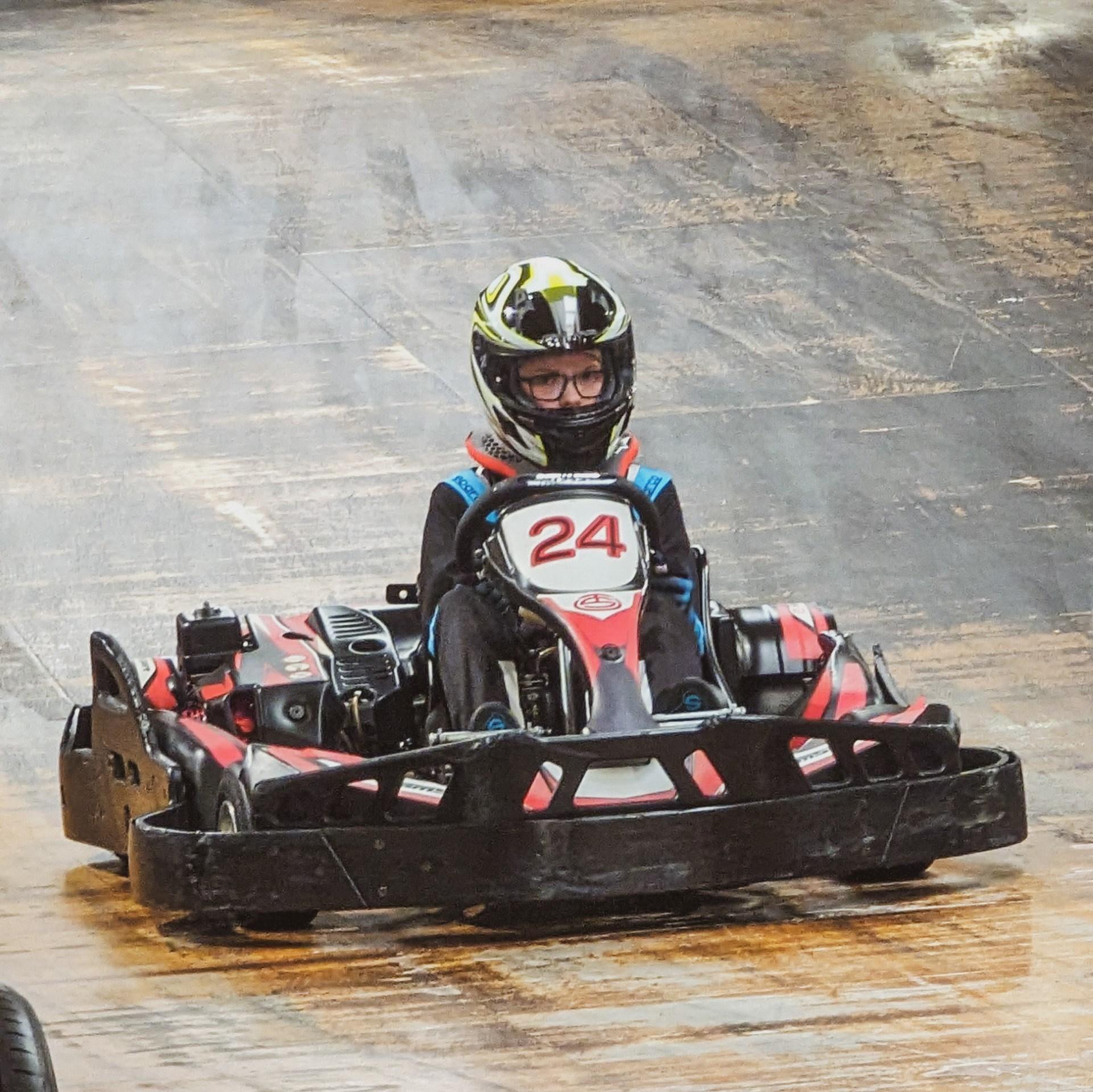 Congratula ons to Theo B, qualified for the local finals in the Bri sh Indoor Kar ng Championships in October. He has worked incredibly hard all summer to improve his mes, and he has also set up a business to help fund his racing. We wish Theo lots of luck in the future.