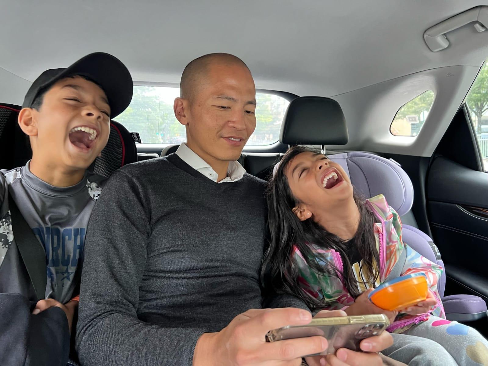 Jon doing funny selfies with the son and daughter of one of his childhood friends in Washington DC.