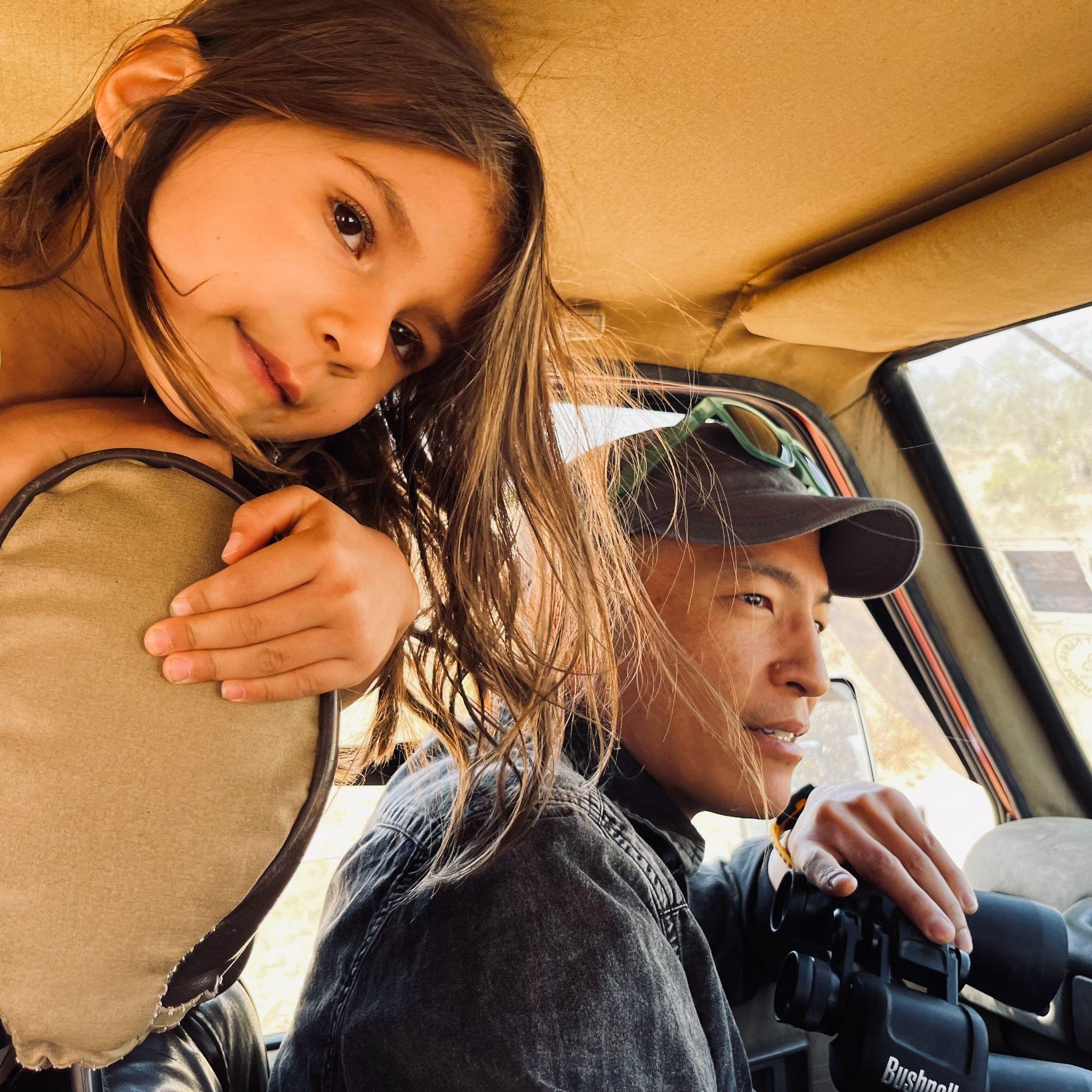 Me on safari in Kenya with Mia, the daughter of our local friends.