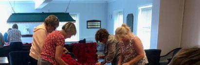 Father Andrew and Steve Toney, Chair of East Preston Parish Council, took some of the bravest Yarnbombers up into the church tower to work out the numbers. It was 12 metres to the ground ‐ it was going to need a vast number of poppies! The Parish Council office and Cooper Adams estate agents got on board and did a wonderful job keeping the village supplied with crochet and kni ng pa erns and collec ng the finished poppies. The target was 4,000 poppies by 1st August. A massive task!
