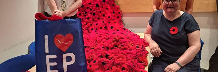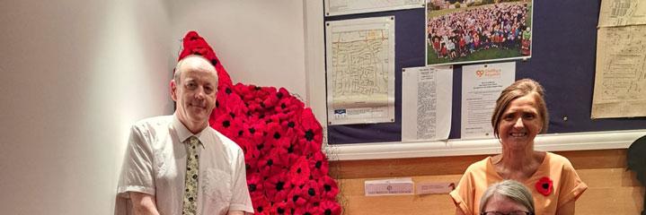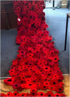 Valerie Sharp, the secretary of the Yarnbombers, said: “We want to thank everyone who has contributed to this project and look forward to mee ng many of you at the ceremony. But don’t worry if you can’t make it, the cascade will stay in place un l mid‐November. If you made a poppy, do visit and see if you can spot it! There will also be a compe on for children to guess the total number of poppies used.”