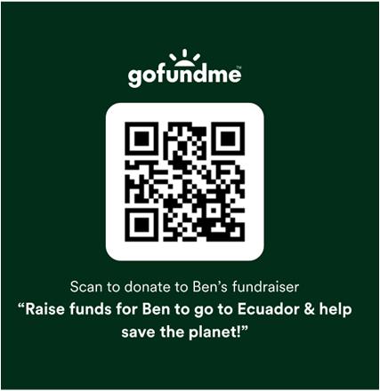 genera ons to come by going over there and helping in any way that I can. In order to do this, I need to raise £6,250. If you would like to help me get to Ecuador, you can either sponsor me by dona ng any amount of money via h ps://gofund.me/9424a652 or scan the QR code. You can also help by dona ng gi s and prizes for my future raffles. I am also planning some events for the spring and summer, including a car wash and a sponsored walk. To find out more informa on on my planned events or how you can help, please email me on BenPB282@outlook.com. Thanks so much!