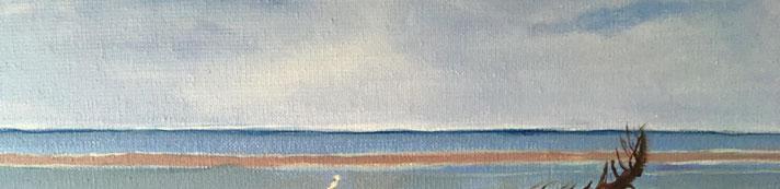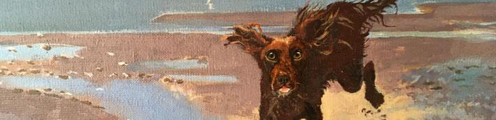 Interes ngly, looking at some of the work created then, it is not dark and dismal in nature but bright and filled with hope. Who couldn't smile seeing Coco the dog, springing along the beach, in Jan Barne 's pain ng below?