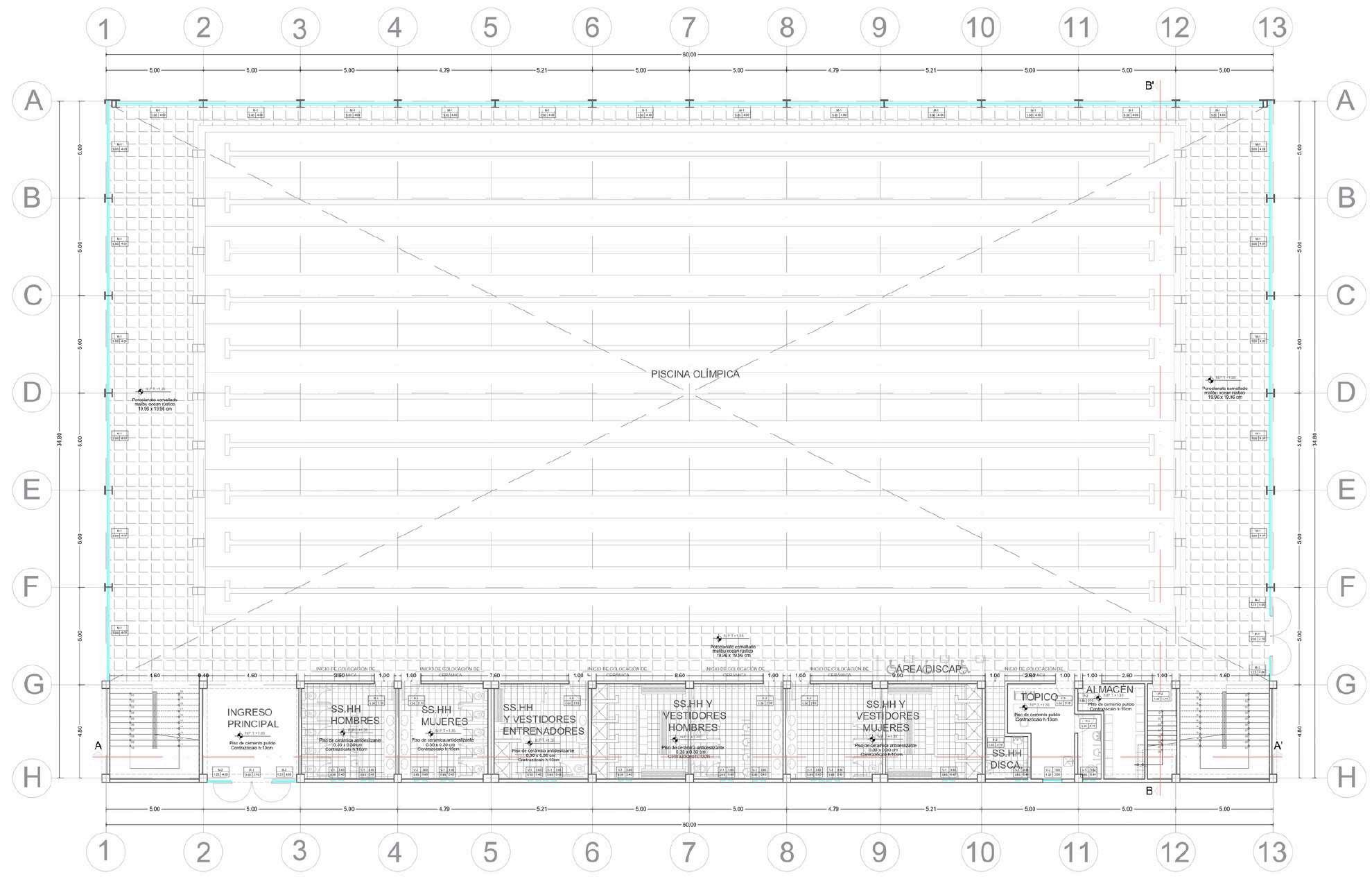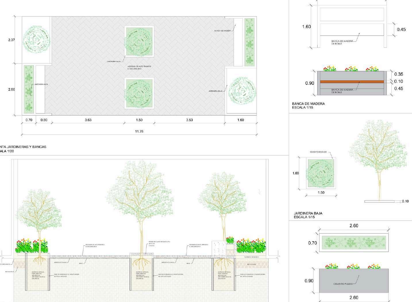 Sección principal del poryecto y detalles constructivos de este.