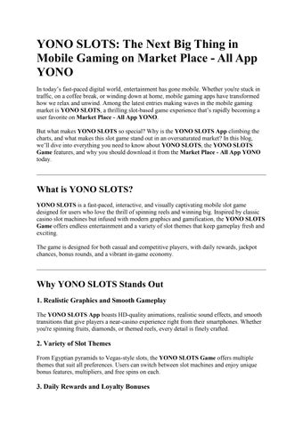 In today’s fast-paced digital world, entertainment has gone mobile. Whether you're stuck in traffic, on a coffee break, or winding down at home, mobile gaming apps have transformed how we relax and unwind. Among the latest entries making waves in the mobile gaming market is YONO SLOTS, a thrilling slot-based game experience that’s rapidly becoming a user favorite on Market Place - All App YONO.
