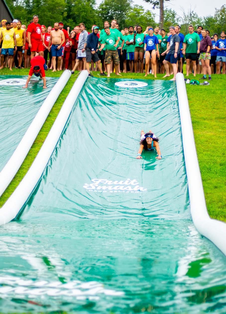 It’s a 3 hour long event that includes camp activities, lip-sync battles, flag decorating and a relay race that ends with slip n slide flip cup.