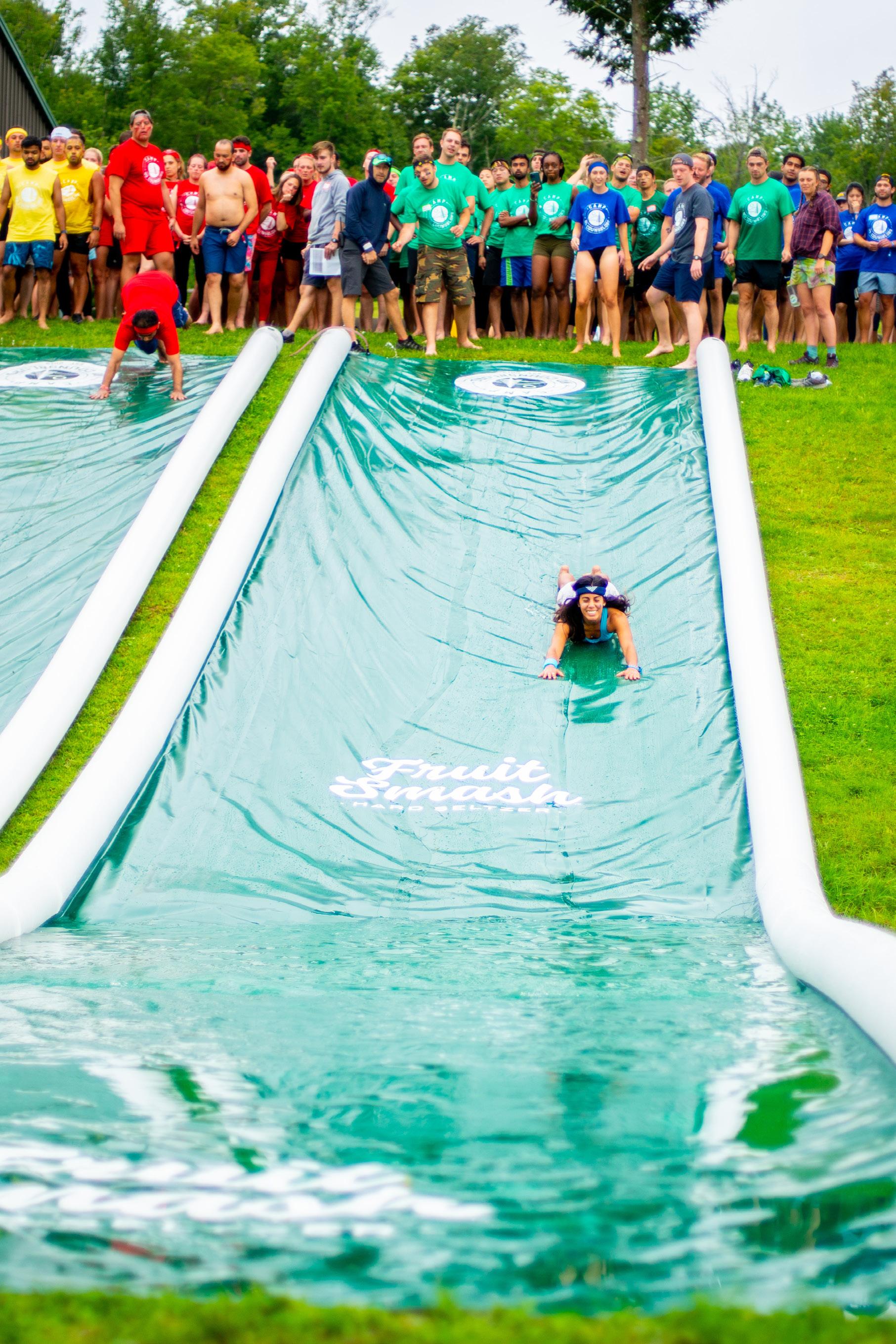 It’s a 3 hour long event that includes camp activities, lip-sync battles, flag decorating and a relay race that ends with slip n slide flip cup.