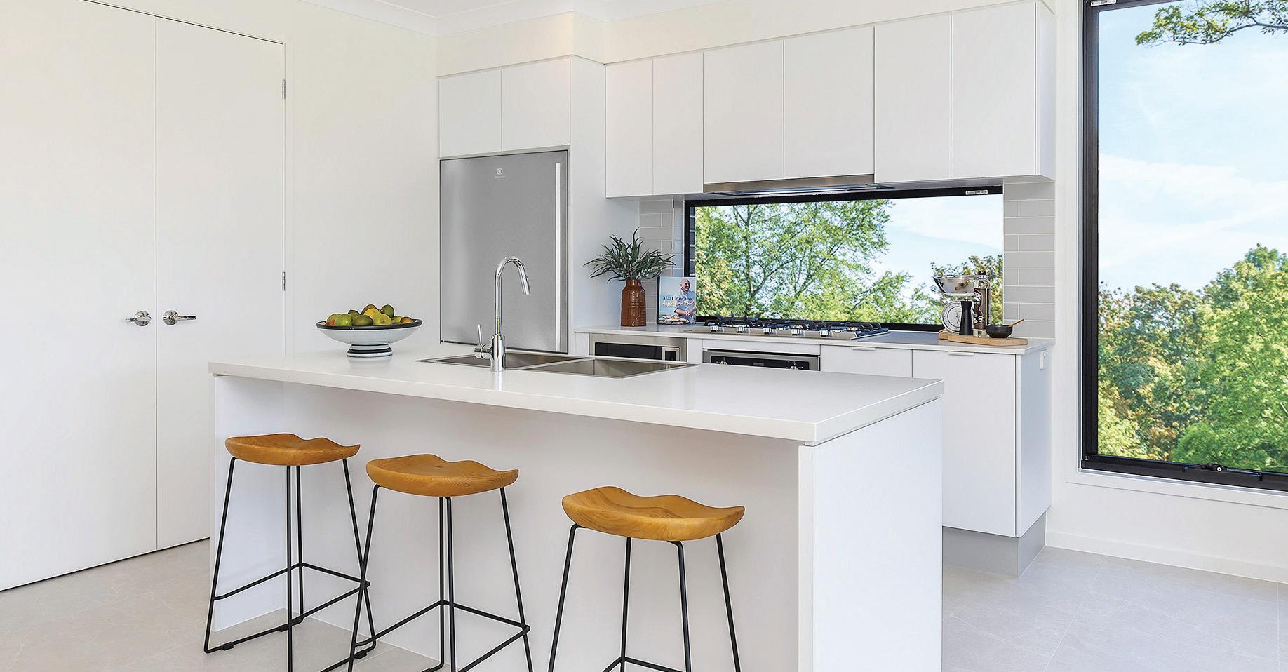 Upgrade the front edge strip and two front side edges of the island bench to 40mm Caesarstone® engineered quartz from the builder’s range