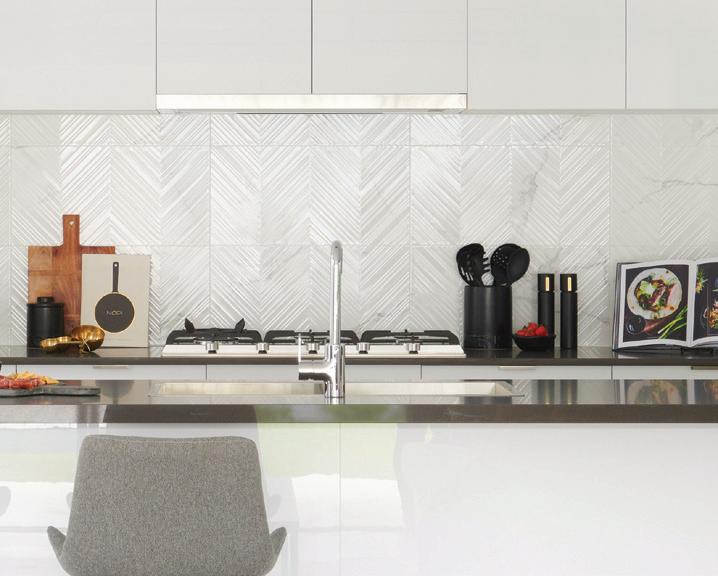Feature tile kitchen splashback with your choice of ceramic tiles with a $60/sqm retail tile allowance.