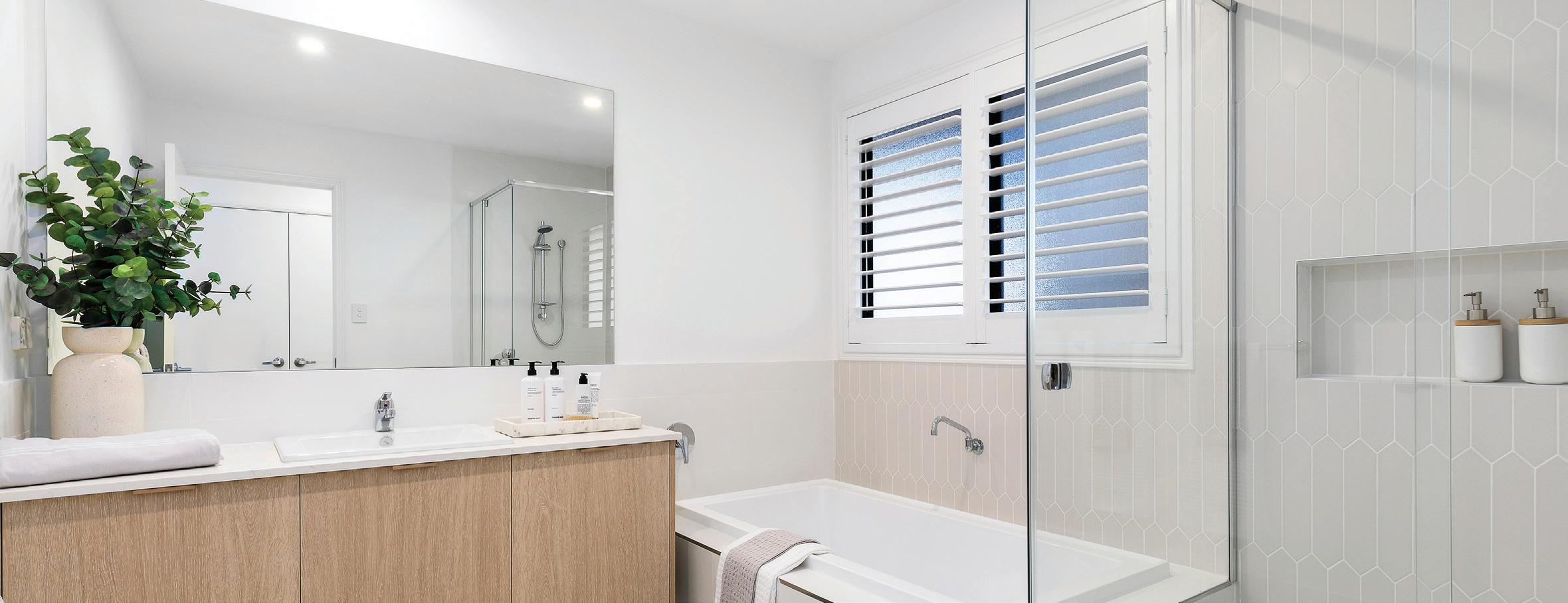 Upgrade to 20mm Caesarstone® vanity top in wide range of colours to main bathroom and ensuite bathroom with porcelain basin from builder’s range with overflow.