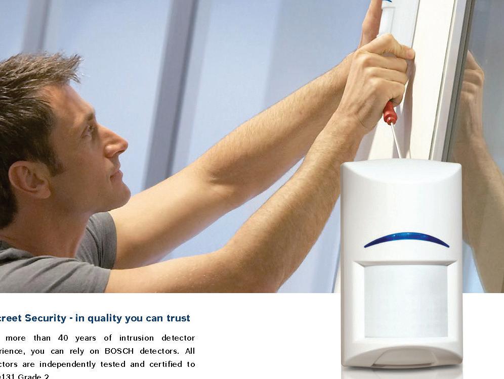 1 x Bosch 2000 Alarm Panel, 1 x Icon Push button codepad, 4 x PIR Sensors, 2 x 4 button remotes, Controls alarm & garage door open/close, 1 x Internal & External Siren Supplied, fitted & installed.