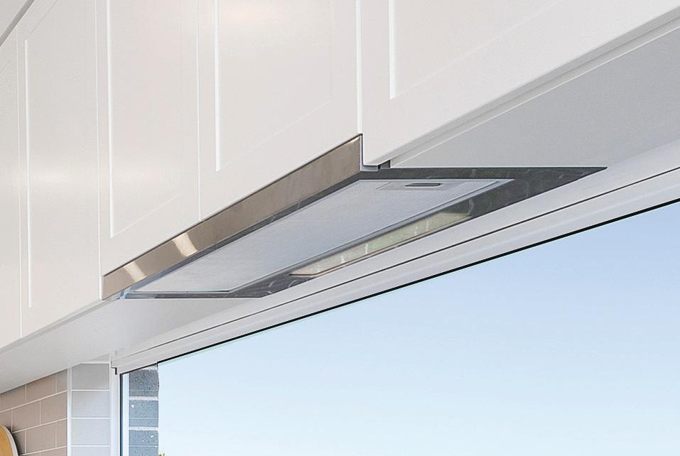 Rangehood: 900mm stainless steel recirculating slide-out rangehood from builder’s range