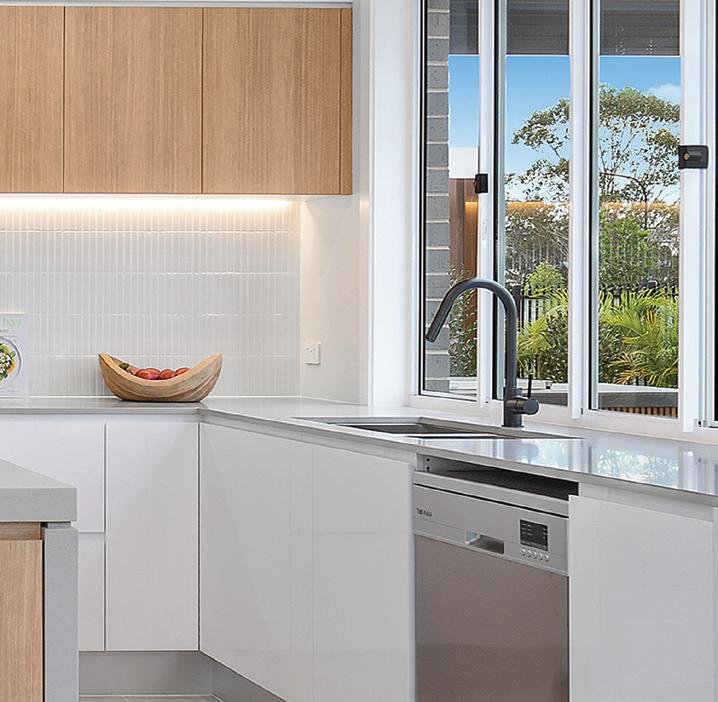 Upgrade the 4 edges of the island bench to 60mm Caesarstone® engineered quartz in a wide range of colours from the builder’s range Note: Includes two 60mm waterfall ends (home specific where displayed) or thickened cabinetry as displayed.