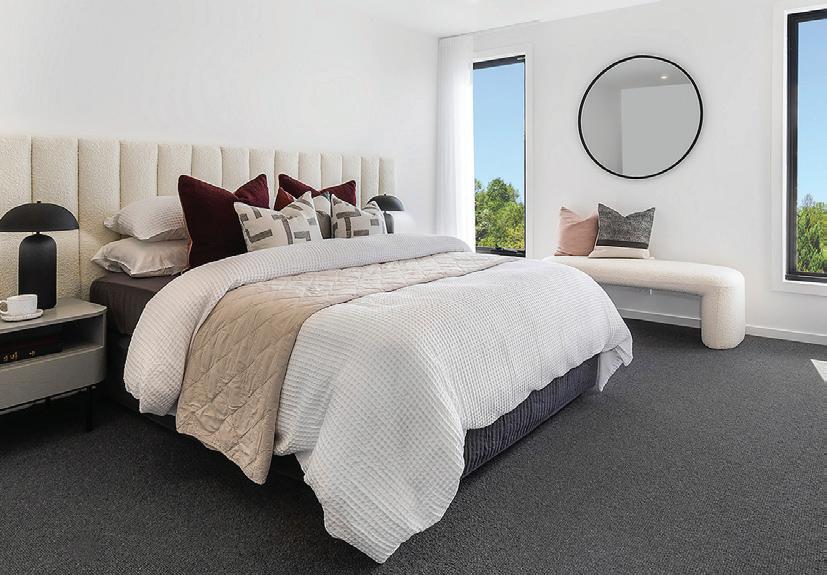 Upgrade all ground flooring to stunning hybrid, waterproof timber-look flooring, available in a wide range of colours for all ground floor areas, including the hallway, family room, living room, media room, study, downstairs bedroom, kitchen, and meals area (if applicable) with scotia. Stairs, upstairs living, hallway and upstairs bedrooms carpeted with modern range of colours, laid on superior 10mm foam underlay.