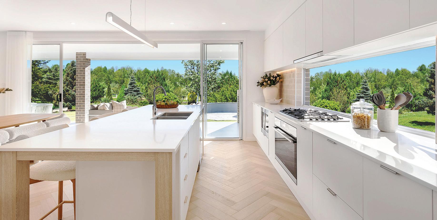 Upgrade the front edge strip and two front side edges of the island bench to 40mm Caesarstone® engineered quartz from the builder’s range