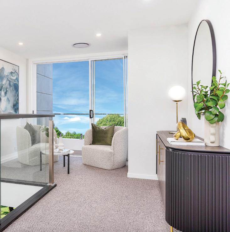 A modern glass balustrade beckons you up to the impressive second storey. Here you’ll discover a light-filled upper living area with a sunlit balcony.