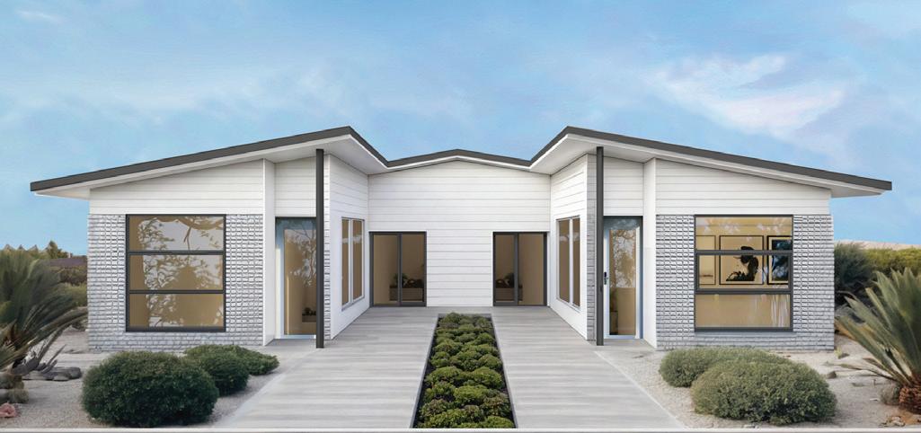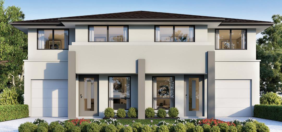 The new Burford St. Colyton duplex display home combines base plan of Unit 1 from the Castleglen design and Unit 2 from the Scenic Bay design, showcasing the different design variations.