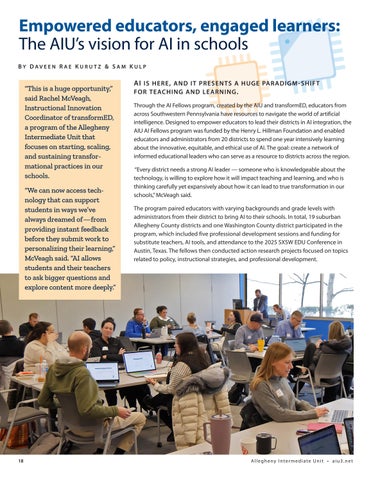 To support this evolving work, the AIU launched the AI Fellows Program, made possible by the generous support of the Henry L. Hillman Foundation. Featured in this issue of AIU Connections, the program empowered to explore a wide range of AI tools and collaborate with peers to share insights and best practices across districts.