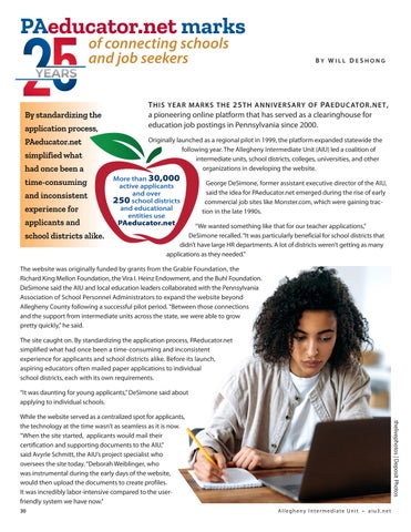 t his year marks the 25 th anniversary o F Pa e D ucator . net , a pioneering online platform that has served as a clearinghouse for education job postings in Pennsylvania since 2000.