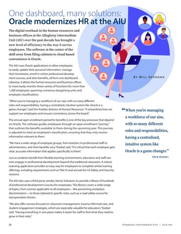 The digital overhaul in the human resources and business offices at the Allegheny Intermediate Unit (AIU) over the past decade has brought a new level of efficiency to the way it serves employees. The software at the center of the shift away from filing cabinets to cloud-based convenience is Oracle.