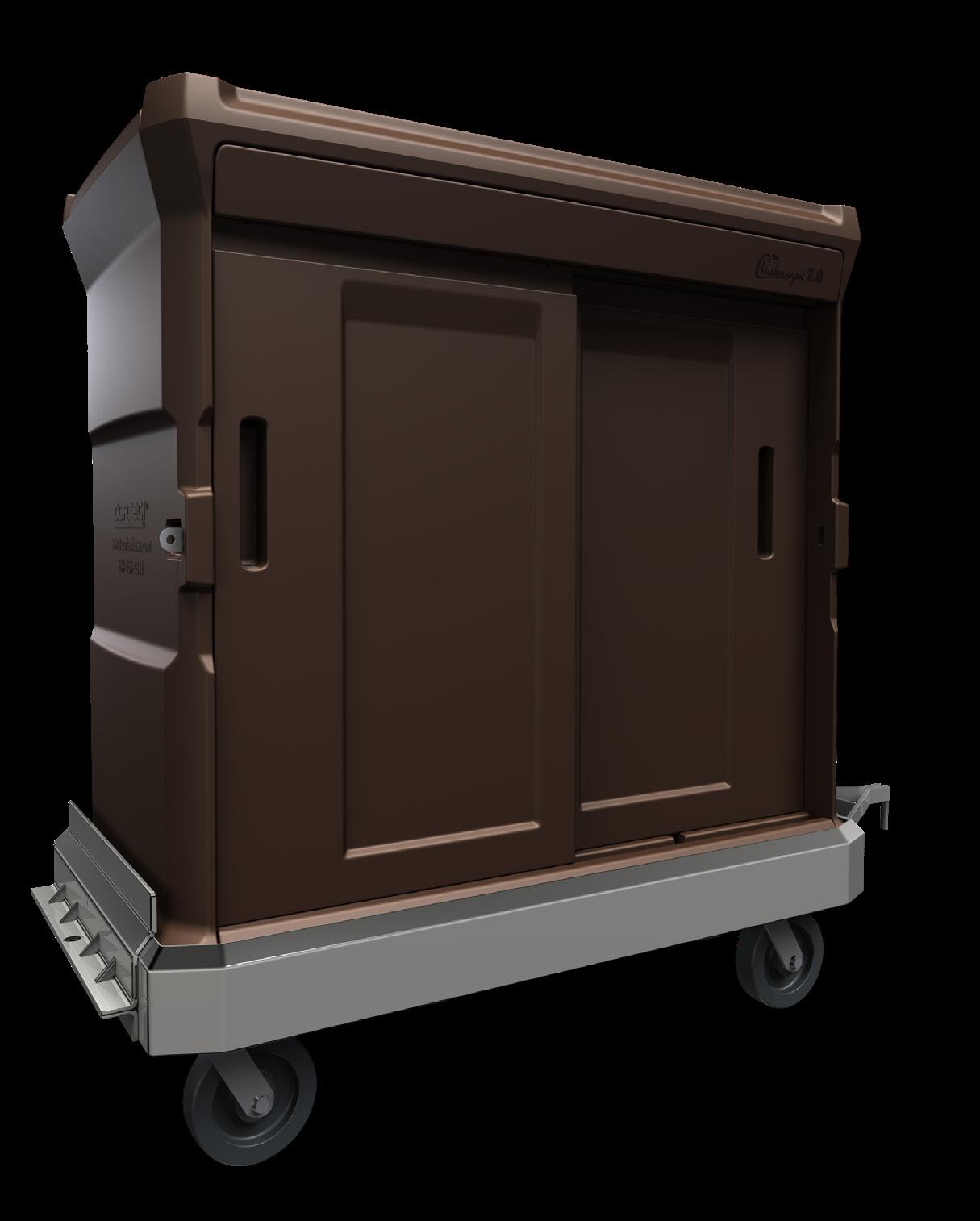The Chuckwagon is a one-piece, insulated meal tray delivery cart designed for high impact resistance and frequent use. The walls and doors of the cavity provide maximum thermal retention when filled with Rock, Rock 2.0, or X-Trays. Sliding doors can be easily removed for cleaning and provide a safe and efficient method for delivering meals.
