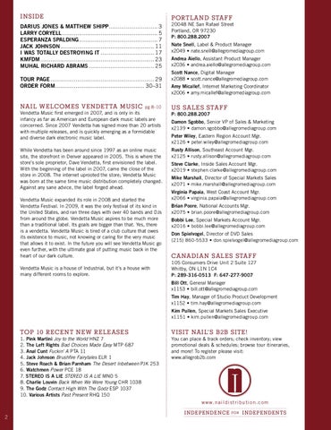 Nate Snell, Label & Product Manager x2049 • nate.snell@allegromediagroup.com Andrea Aiello, Assistant Product Manager x2036 • andrea.aiello@allegromediagroup.com Scott Nance, Digital Manager x2088 • scott.nance@allegromediagroup.com Amy Micallef, Internet Marketing Coordinator x2006 • amy.micallef@allegromediagroup.com