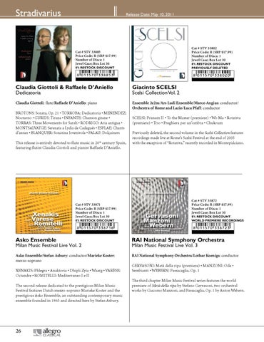 SCELSI: Pranam II • To the Master (premiere) • Wo Ma • Rotativa (premiere) • Trio • Preghiera per un’ombra • Chukrum Previously deleted, the second volume in the Scelsi Collection features recordings made live at Rome’s Scelsi Festival at the end of 2005 with the exception of “Rotativa,” recently recorded in Montepulciano.