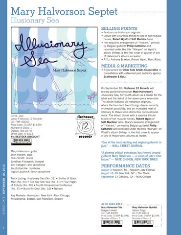 Key Markets: Hometown: New York. Also: Chicago, Philadelphia, Boston, San Francisco, Seattle ALSO AVAILABLE Mary Halvorson Trio Dragon’s Head