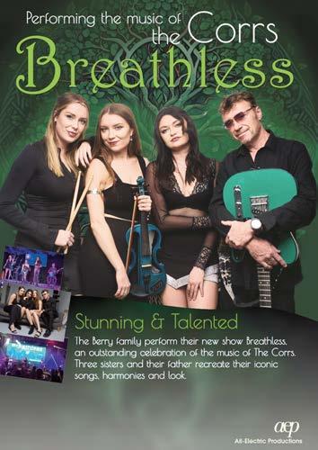 Stunning, multi-talented Breathless take their new show on tour – a celebration of Irish music and dance with the music of The Corrs, Bewitched, Boyzone, Westlife and more! The Berry family create beautiful harmonies, joined by Irish dancers in this vibrant act.