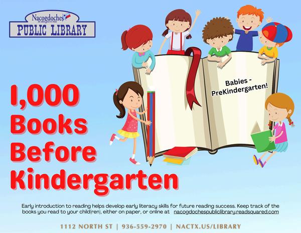 The 1,000 Books Before Kindergarten, an initiative to get parents and caregivers to read to their babies and children continues. There is now information about the program on the library’s website at nactx.us/library.