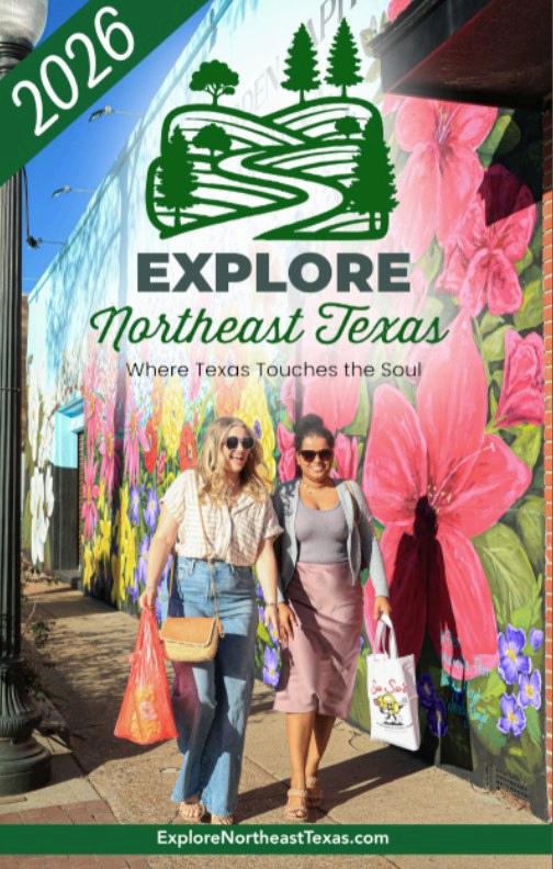 This week Visit Nacogdoches Director Ashley Morgan attended a Northeast Texas Tourism Council meeting in Kilgore, where the 2026 NETTC Guide was revealed, with Nacogdoches as the cover photo! See attached for the design. Free copies are available at the Visitor Center.