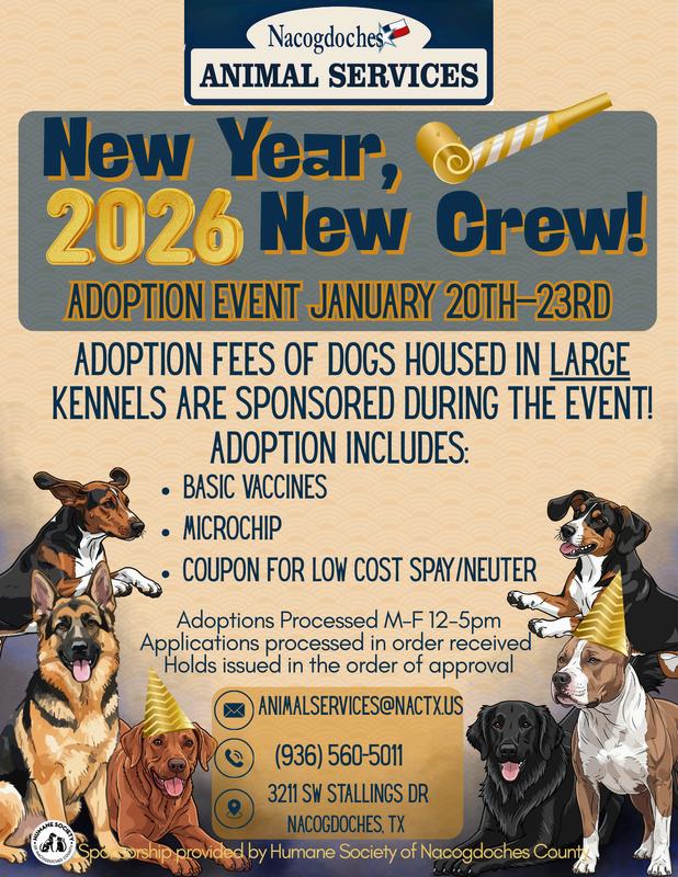 Residents who wish to file an application for the City of Nacogdoches General Election ballot may do so from now until February 13. The election, scheduled for May 2, 2026, will fill the expiring terms for the Southeast Ward and Southwest Ward Council Member positions. For more information, click here
