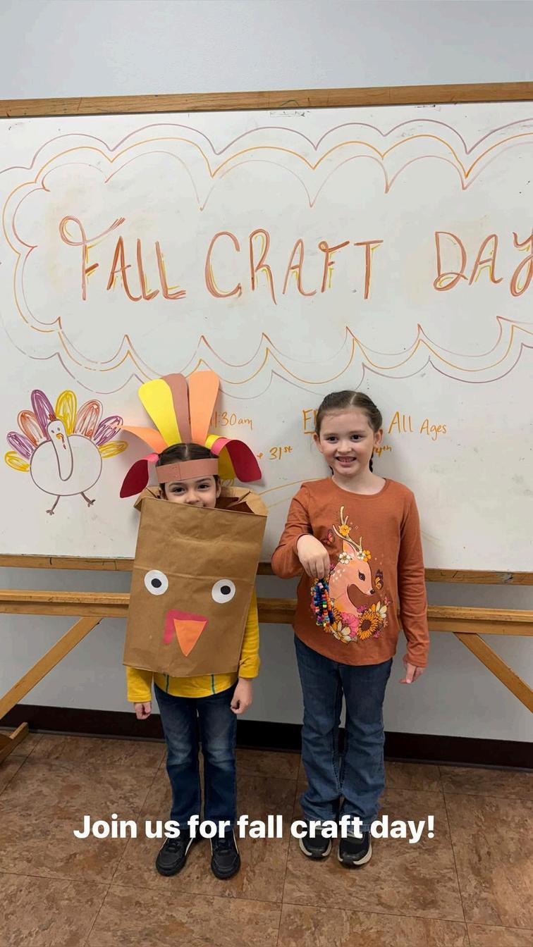 At today’s Fall Craft Day, children made turkeys. The next Fall Craft Day will be next Wednesday December 10th