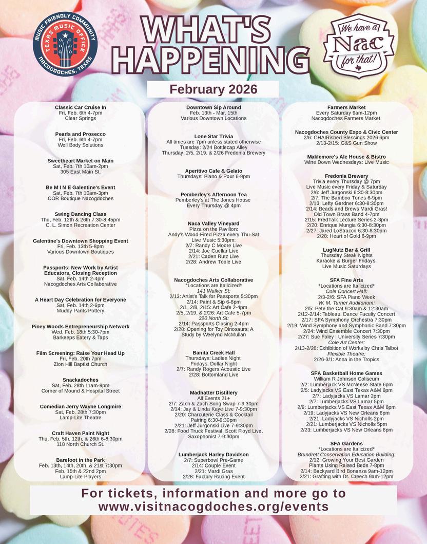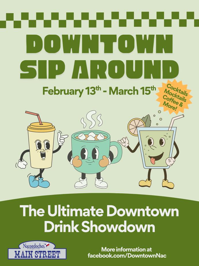Nacogdoches Main Street is excited to launch the first-ever Downtown Sip Around a month-long competition spotlighting specialty drinks crafted by downtown restaurants. From mocktails to cocktails, each stop on the Sip Around will feature a unique beverage for guests to try and rate.