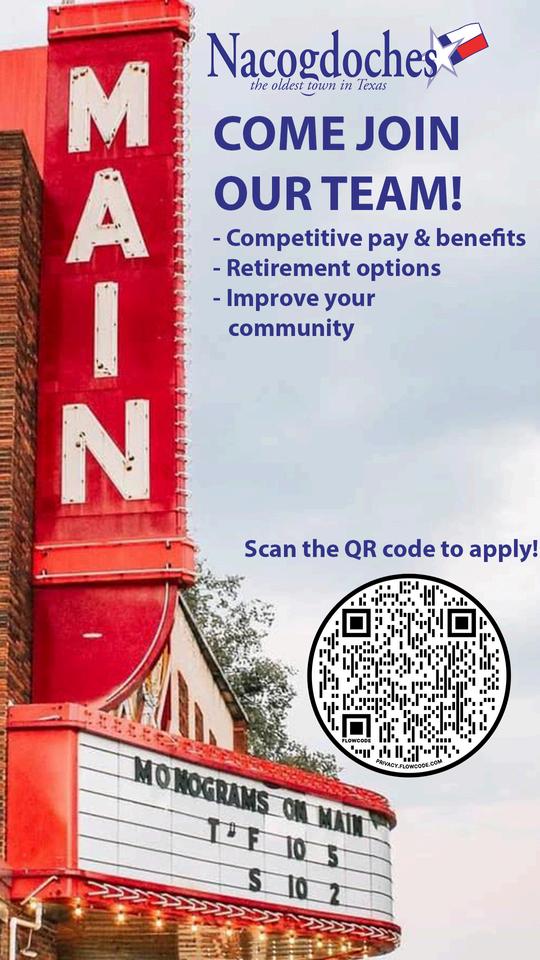 TheCityofNacogdochesisanEqual OpportunityEmployer,andpromotesa drugandalcoholfreeworkplace.