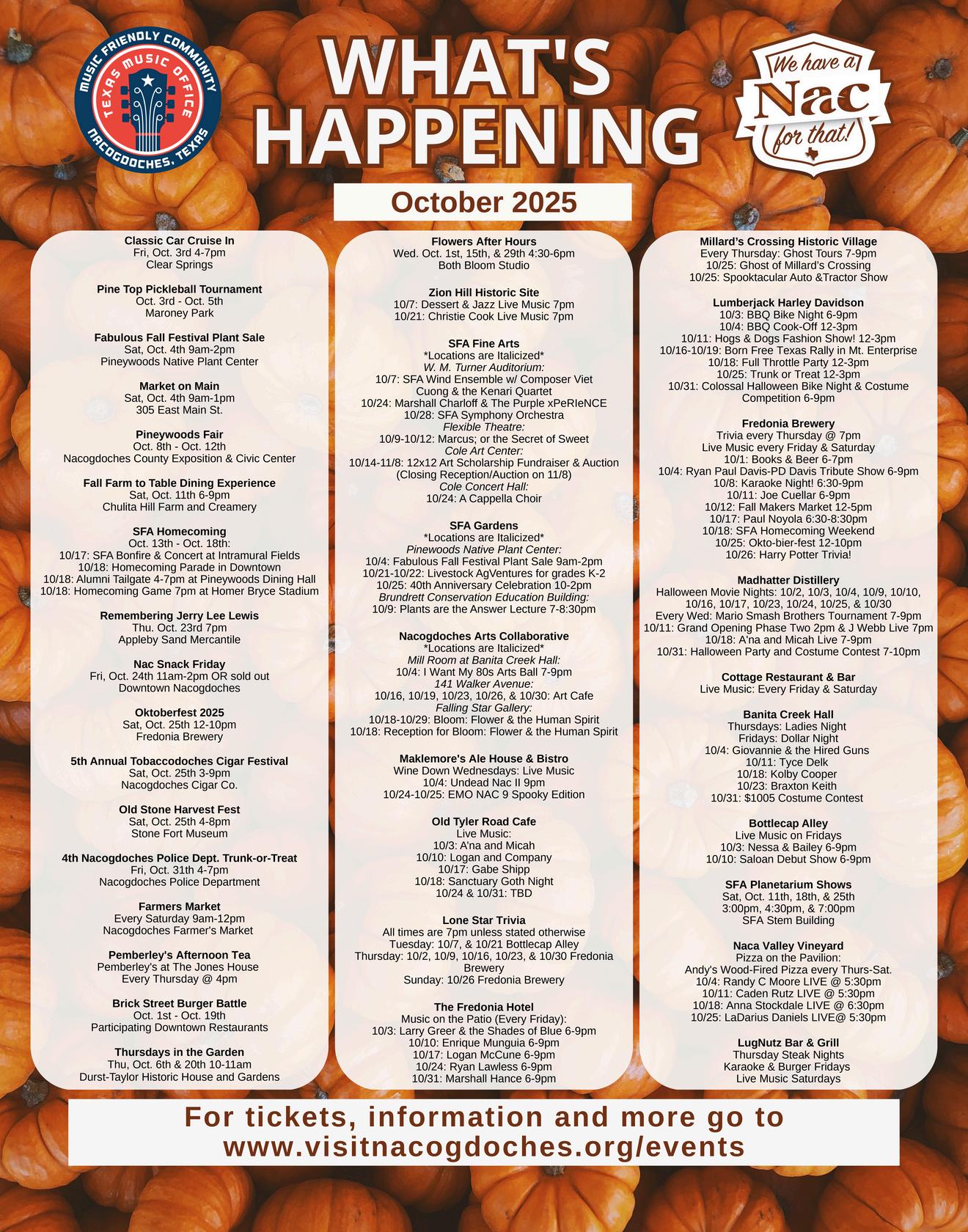 Looking for weekend plans? Head over to the Pineywoods Fair at the Nacogdoches County Exposition Center! The fair runs through Sunday, October 12th, so don’t miss your chance to enjoy the rides, food, and fun!