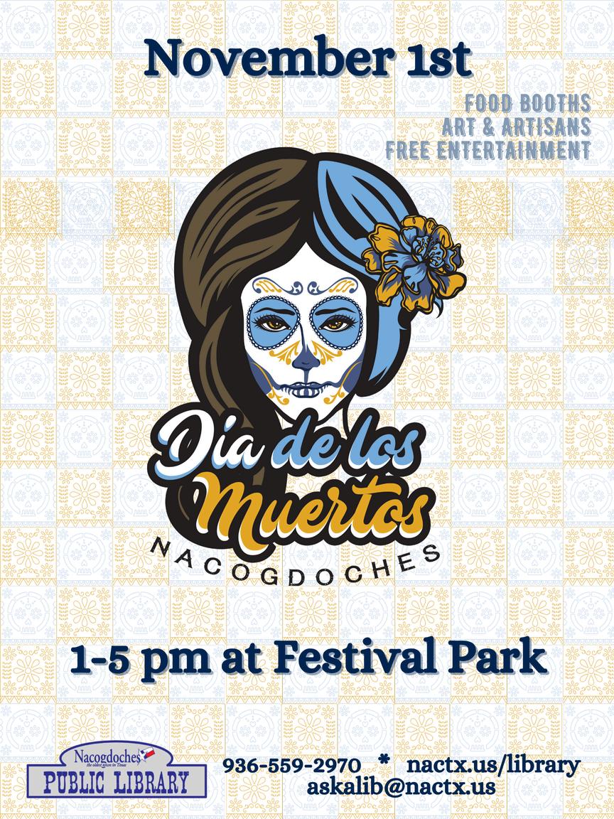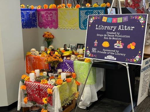 Several volunteers and families came by to make decorations for the Día del los Muertos Festival. The Grupo de Danza Folklorico- Son de Mexico also made a beautiful altar at the library. The festival will be Saturday, November 1 from 1-5pm at Festival Park. To find out more about the event, please visit the website at nactx.us/library.