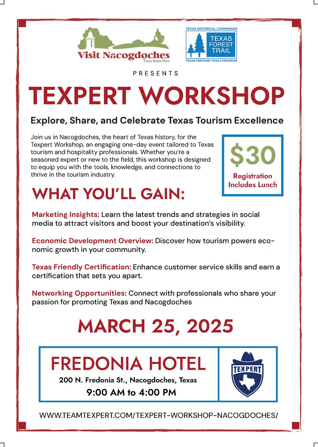 There's still time to sign up for the TexPert Workshop! Click here to learn more and register: https://teamtexpert.com/texpert-nacogdochesregistration-form/