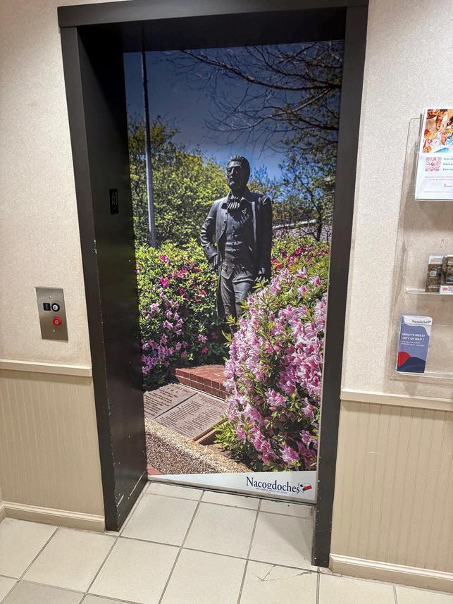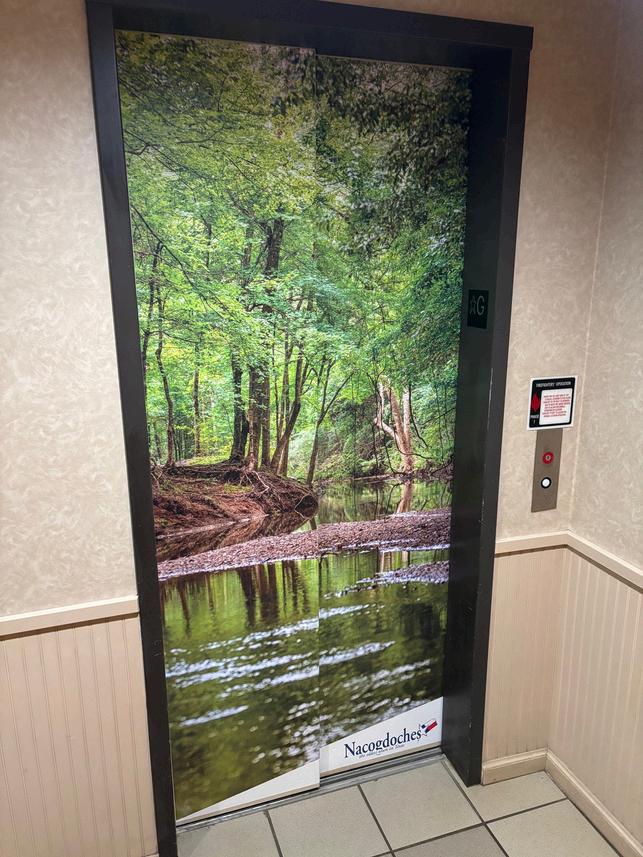 Residents visiting City Hall will notice some new artwork adoring the elevators at either end of the building. These newly installed elevator clings help to elevate the space they are in and will help showcase the beauty of Nacogdoches year round!