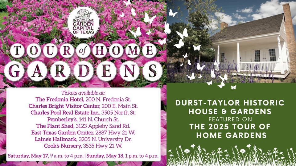 The Durst-Taylor Historic House and Gardens is proud to be featured on the 2025 Garden Capital of Texas Tour of Home Gardens.