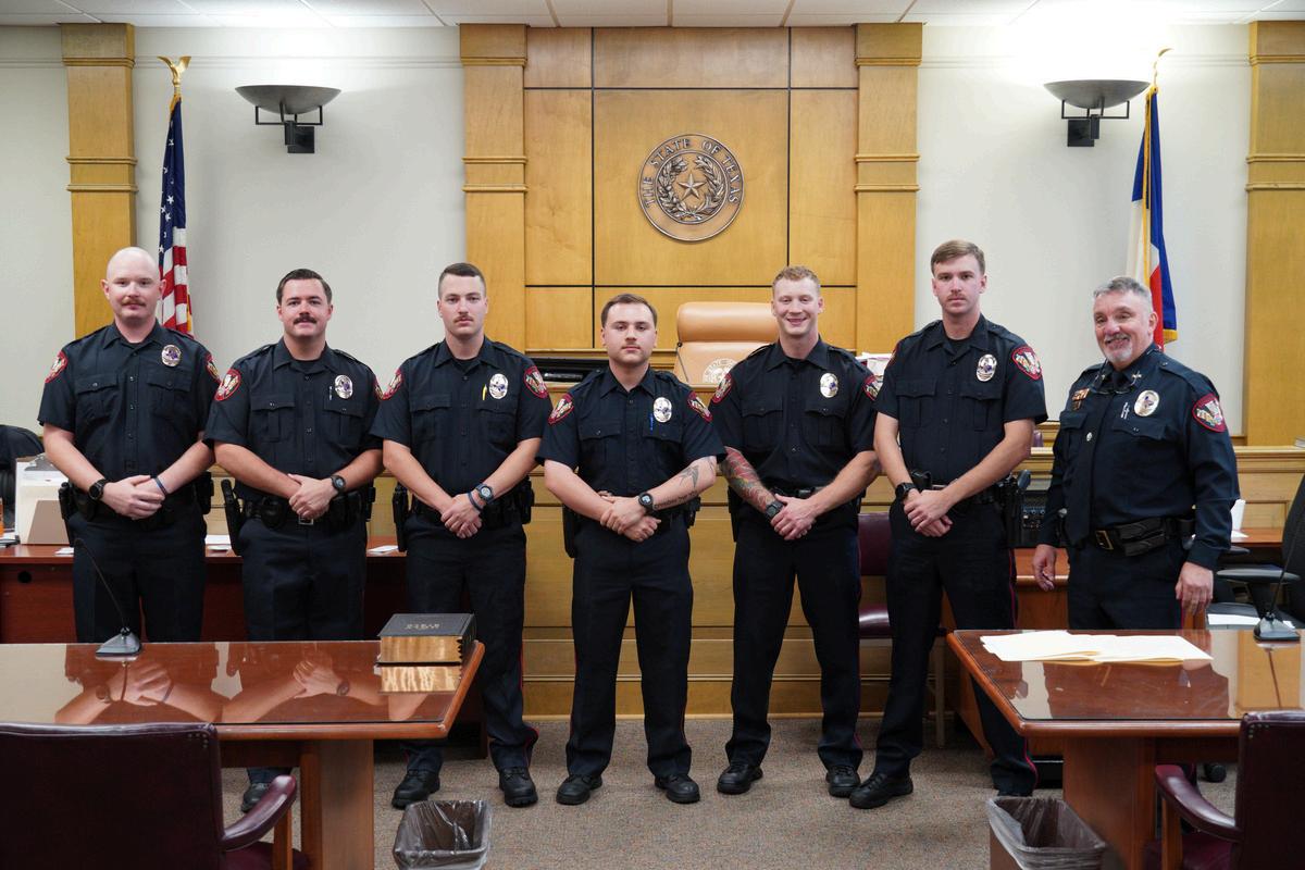 The Nacogdoches Police Department welcome six new officers to the ranks this week as Officers McGowen, Burns, Wall, Bryant, Goerner and Bradford took their oaths of office in front of County Judge Greg Sowell and assembled friends and family.