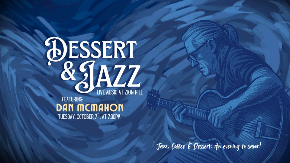 On Tuesday, October 7 at 7:00 PM, we invite you to Dessert & Jazz, an evening of smooth music with Dan McMahon in the historic Zion Hill Church. Guests can enjoy complimentary coffee and a dessert spread while listening to his performance.
