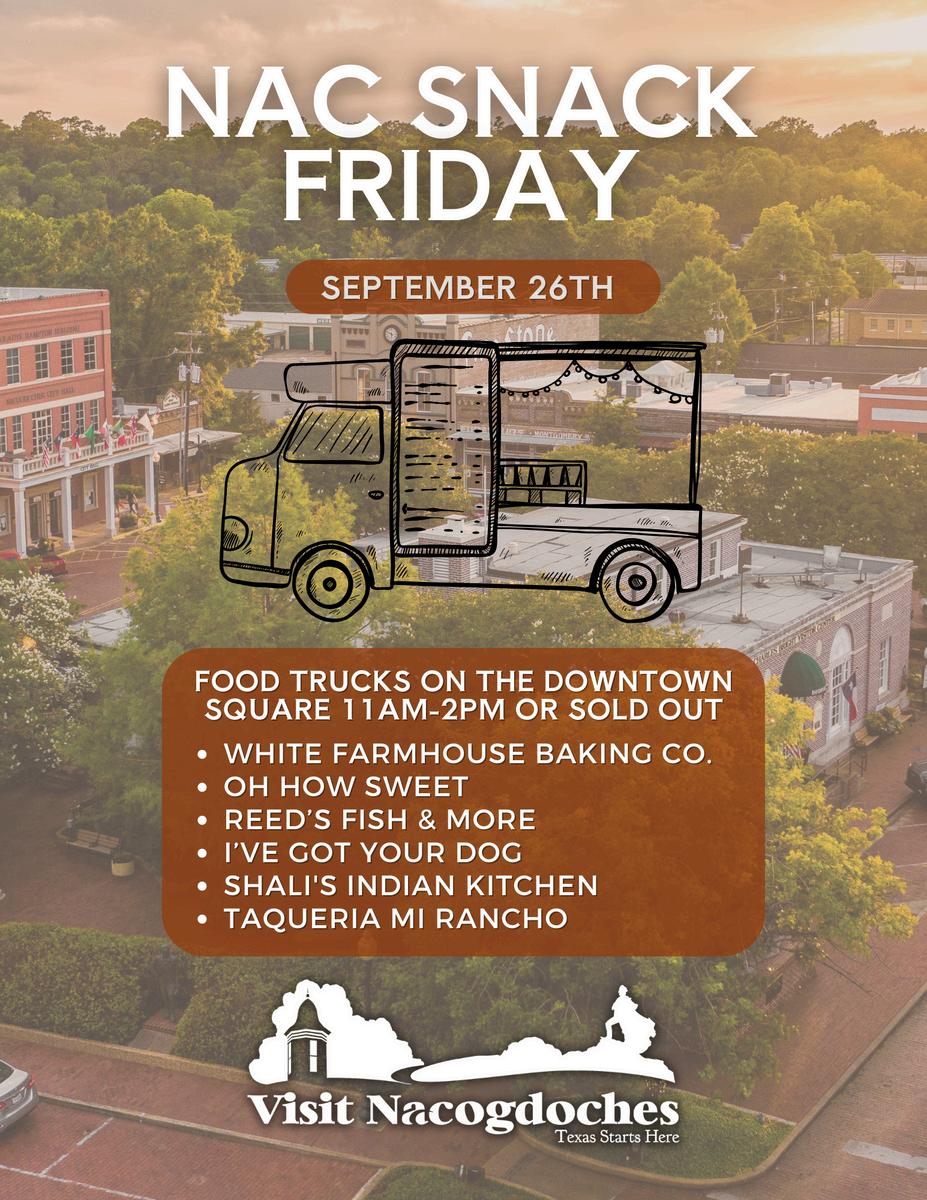 Nac Snack Friday returns this week! Join us for lunch on the square from 11am2pm for delicious bites and tunes.