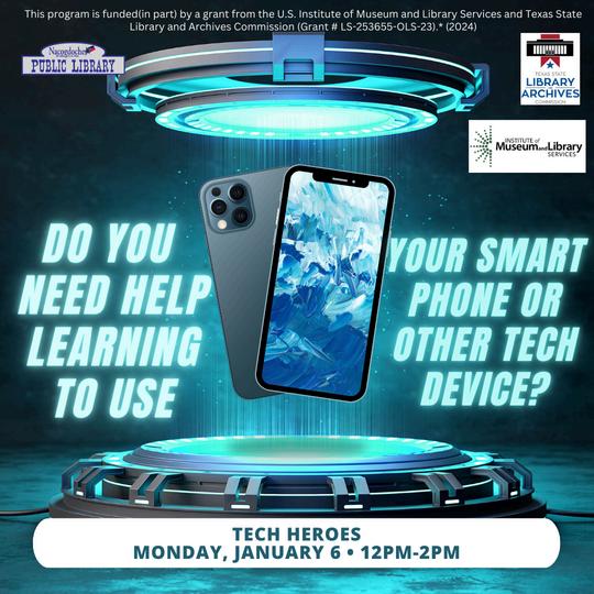 In anticipation of folks getting new tech devices over the holidays, the library staff is offering Tech Heroes on Monday, January 6th from 122pm. Library staff and volunteers will help customers learn to use their new (or not new) devices. Oftentimes customers get new devices from family members, but struggle to use them once the family returns home after the holidays. We are here to help. The session is first-come, first-serve. Customers will also learn about the free digital products available through the library