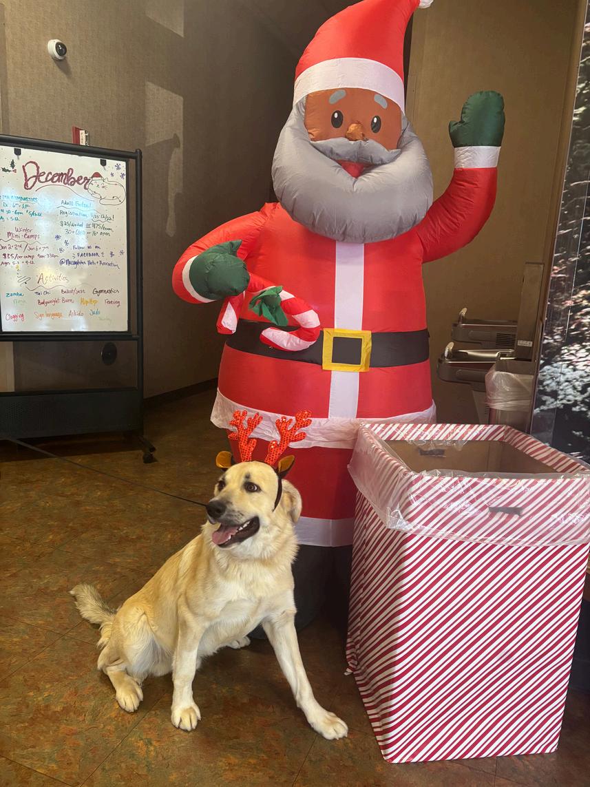 Beethoven came by for a short performance at the recreation center today He is a 3 year old great pyrenees mix and is looking for his forever home. He is great at sitting and waiting to be pet. He played his role as a reindeeer wll and is hoping to find his forever home by Christmas.