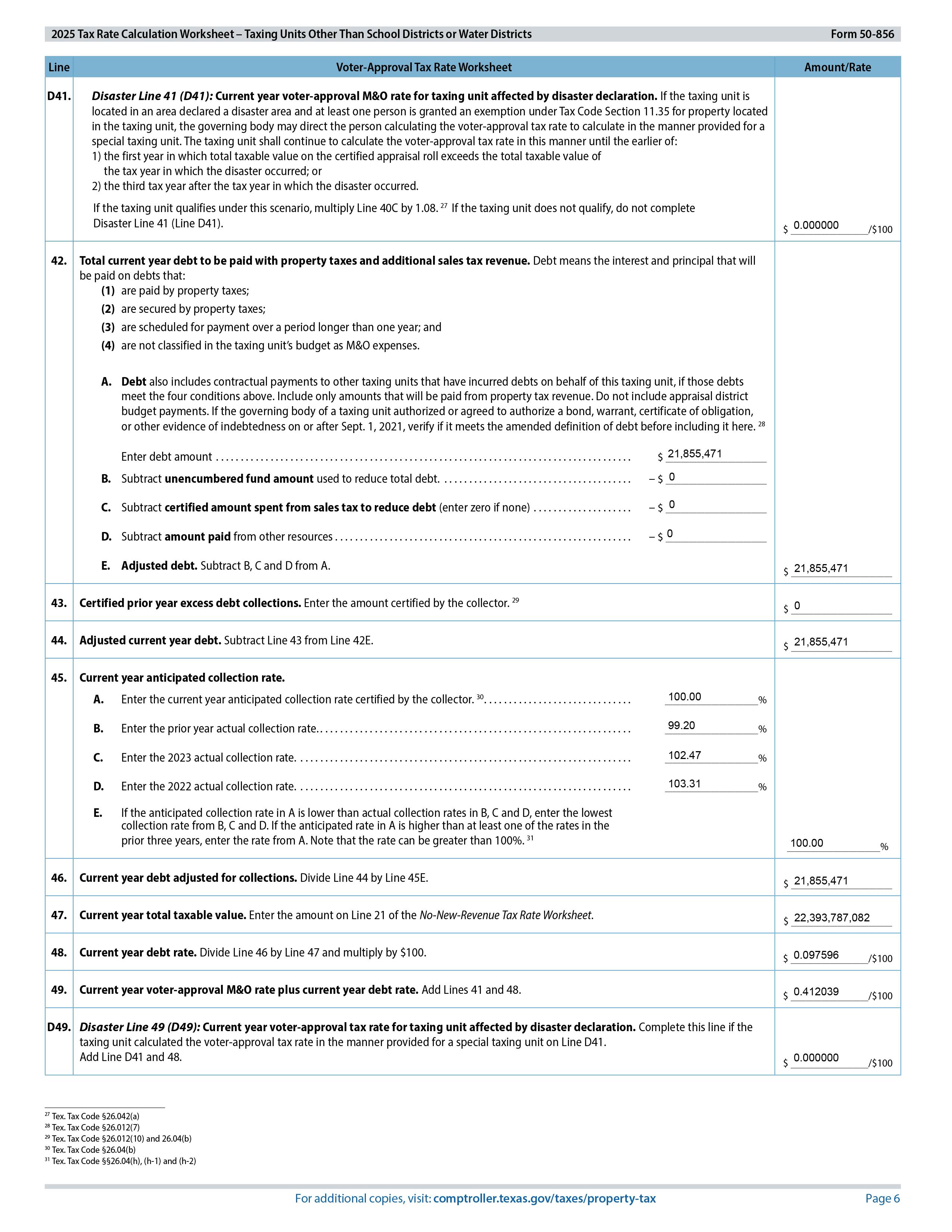 This budget proposes a decrease in the City’s tax rate to $0.41540. At this rate, the municipal tax paid on the median-valued single-family residential homestead in FY26 would be $1,988, or about $165 per month. For far less than a typical electric bill at that same median single-family home, your municipal tax bill pays for 24/7/365 police protection, emergency fire and medical response, acres of public parks, miles of public trails, a world class library, a well maintained and highly efficient roadway network, and countless other amenities and services. The point is, that while we recognize $165 per month is a significant expenditure, it is a payment that is being professionally and purposefully used to provide you and your community with immense value.
