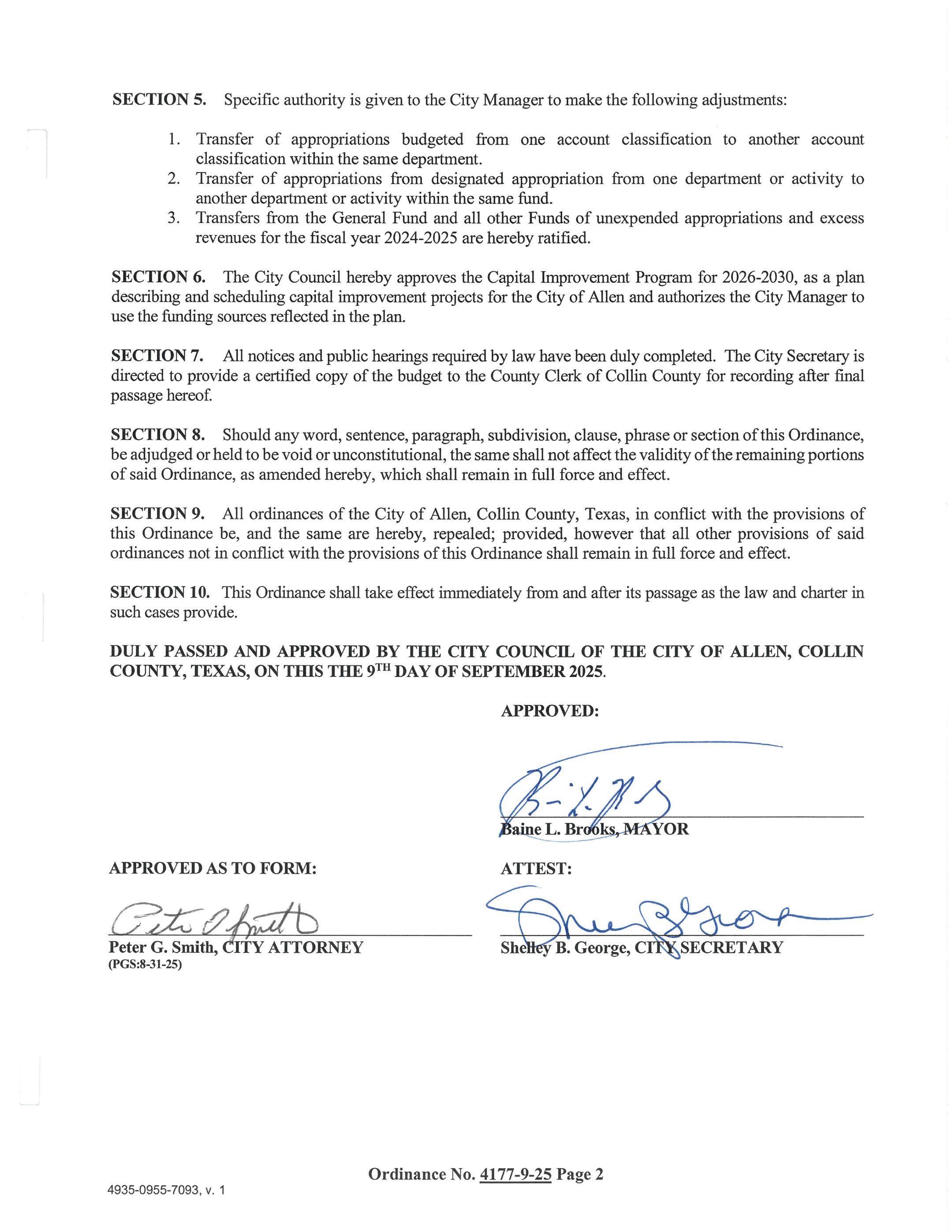 Allen continues to chart a steady course: fiscally sound and firmly anchored by the values of this community. This Fiscal Year 2025-2026 budget makes thoughtful, timely investments that meet today’s needs while helping us navigate what lies ahead.