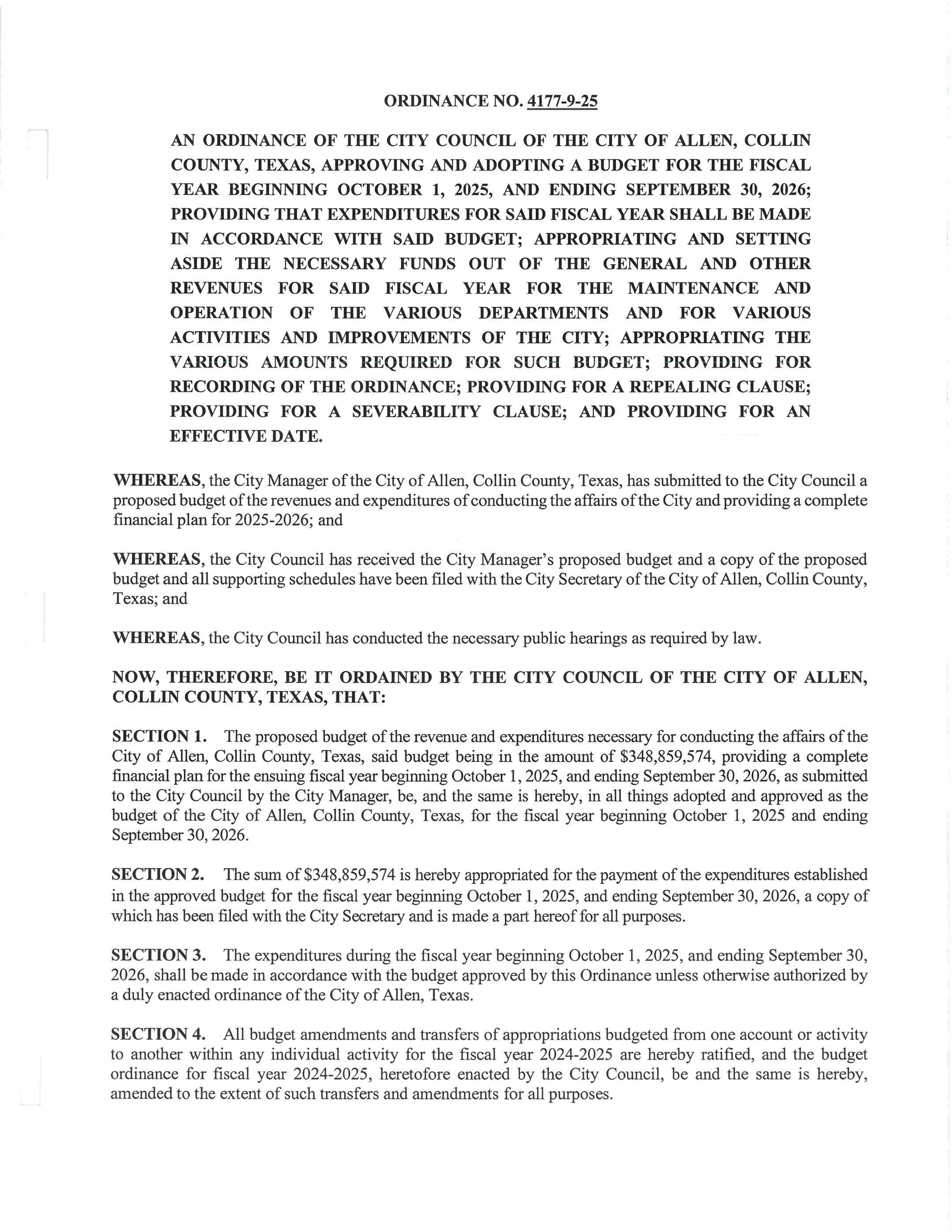 City of Allen, Texas – FY2025-2026 Annual Adopted Budget